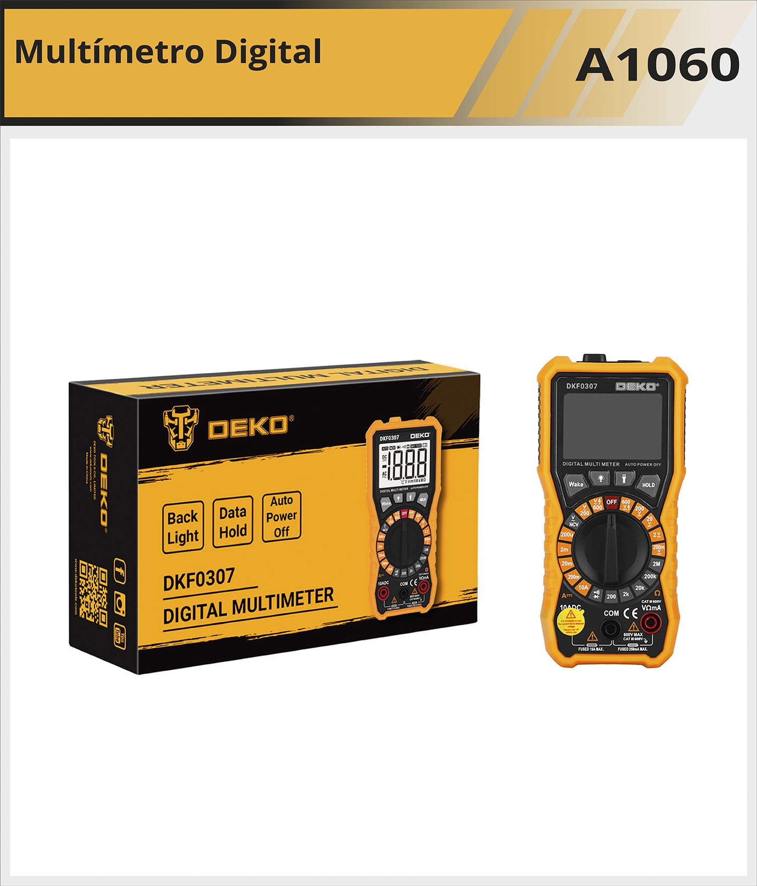 Multimetro Digital / pantalla LCD de 2000 cuentas /con iluminacion / voltaje DC 200mv/2v/200v/60v / Voltaje CA 200v/600v/corriente continua / Resistencia 200mA /2mA/20mA / 10A..
